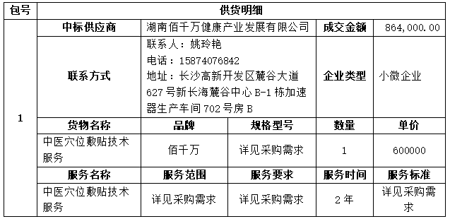 株洲市婦幼保健院的株洲市婦幼保健院中醫(yī)穴位敷貼技術(shù)服務采購項目競爭性磋商采購項目于2024年03月25日結(jié)束,現(xiàn)將中標(成交)結(jié)果公告如下: