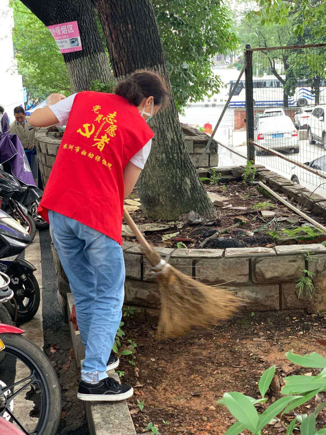 黨員志愿者打掃院內(nèi)環(huán)境衛(wèi)生