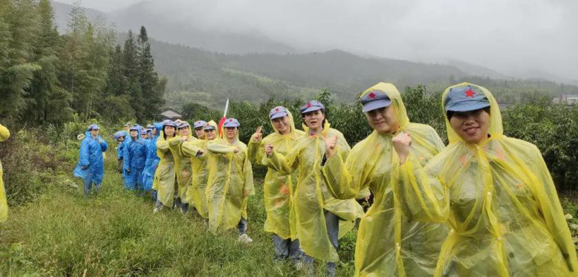 習(xí)近平總書記說過,一切向前走,都不能忘記走過的路;走得再遠(yuǎn)、走到再光輝的未來,也不能忘記走過的過去,不能忘記為什么出發(fā)。第二天上午,大家追尋紅色足跡,重走紅軍路,重溫革命歷史,沿著當(dāng)年工農(nóng)紅軍走過的路線,翻山越嶺,并在沿途齊唱“毛委員跟我們?cè)谝黄稹薄案璩鎳?guó)”等催人奮進(jìn)的經(jīng)典歌曲,聆聽紅色故事,感受先輩們不怕苦、不怕累,百折不撓、自強(qiáng)不息的革命精神。