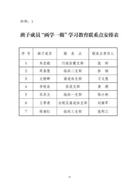 醫(yī)院成立“兩學(xué)一做”學(xué)習(xí)教育領(lǐng)導(dǎo)小組,朱忠彪、周春慧任組長,李秋良任副組長,文朝暉、宋兵文、王季青、陳湘紅任領(lǐng)導(dǎo)小組成員,領(lǐng)導(dǎo)小組辦公室設(shè)黨辦,負(fù)責(zé)牽頭組織實(shí)施,辦公室、人事教育科、監(jiān)審科及有關(guān)科室配合做好相關(guān)工作。各支部要制定學(xué)習(xí)安排表,確?!皟蓪W(xué)一做”專題學(xué)習(xí)教育有序推進(jìn)。