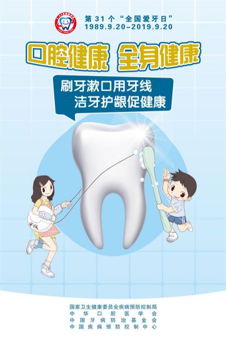2019年9月20日是第31個“全國愛牙日”。為貫徹落實《健康中國行動(2019—2030年》和《健康口腔行動方案(2019—2025年)》有關(guān)要求,要加大口腔健康科普宣傳力度,提高群眾口腔健康意識,建立自我口腔健康行為,進一步提升群眾口腔健康素養(yǎng)水平,營造有利于口腔健康的良好社會氛圍。