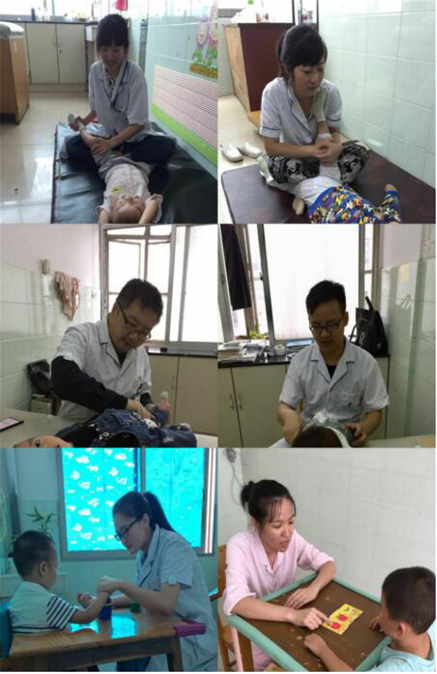 右邊分別進(jìn)行著按摩、針灸、理療、高壓氧治