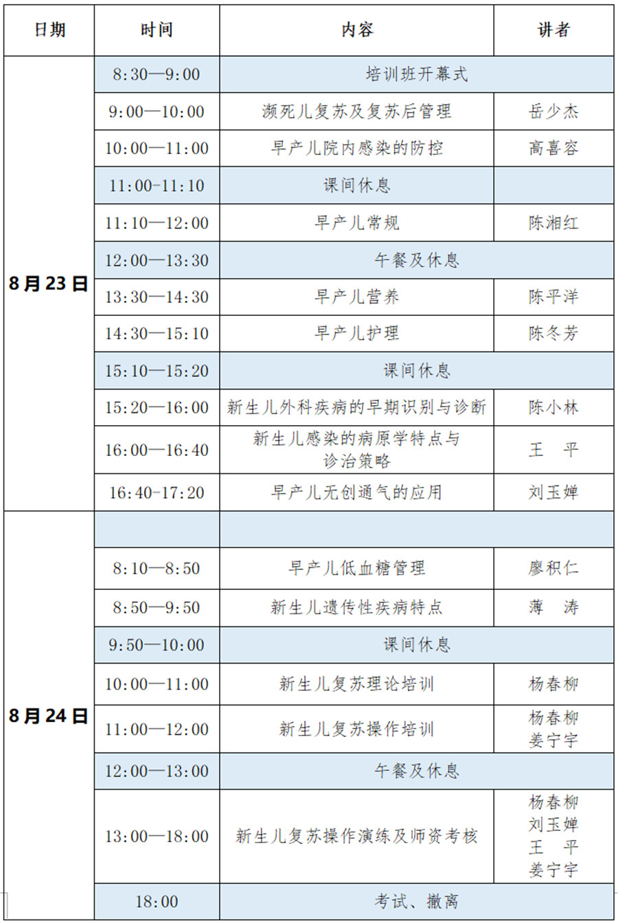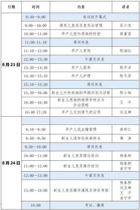 為降低我市新生兒死亡率,推動(dòng)我市新生兒學(xué)科建設(shè)和規(guī)范學(xué)科管理、開(kāi)展新生兒科學(xué)術(shù)研討及交流,不斷提高早產(chǎn)兒診療水平,株洲市兒科專業(yè)委員會(huì)新生兒學(xué)組、株洲市兒科質(zhì)量控制中心、株洲市婦幼保健院/株洲市兒童醫(yī)院于2019年8月22日-24日聯(lián)合舉辦“2019年早產(chǎn)兒管理培訓(xùn)班”暨新生兒復(fù)蘇市級(jí)師資培訓(xùn)班。本次學(xué)習(xí)班將邀請(qǐng)省內(nèi)知名專家岳少杰、陳平洋、高喜容、薄濤等教授專題講座,內(nèi)容生動(dòng),臨床適用性強(qiáng)。另外還增加了新生兒復(fù)蘇師資培訓(xùn)內(nèi)容。授予省級(jí)繼續(xù)醫(yī)學(xué)教育Ⅰ類學(xué)分10分(編號(hào):2019-1-443)。熱誠(chéng)歡迎各位同仁積極參加,現(xiàn)將有關(guān)事項(xiàng)通知如下: