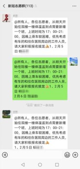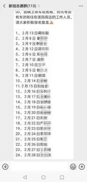 2月4日傍晚,株洲市婦幼保健院門診部主任劉盛忙完一天的工作,在群里發(fā)了一個通知:“@所有人,各位志愿者,從明天開始住院樓一樓體溫監(jiān)測點需要新增一個班,上班時間為17:00--21:00,因晚上乘車較困難,優(yōu)先考慮有車的和住在醫(yī)院周邊的工作人員,請大家積極報名接龍?!?SPAN lang=EN-US style="FONT-SIZE: 18px; FONT-FAMILY: 仿宋_GB2312">