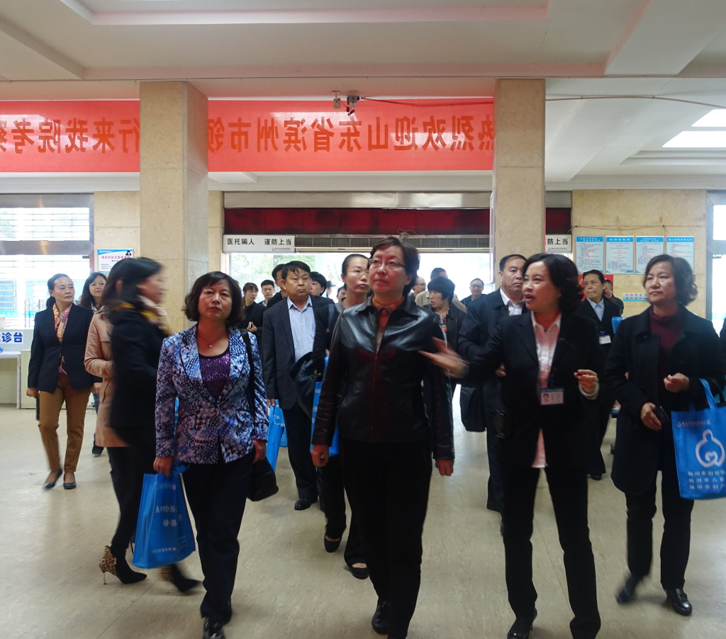 10月27日,由山東省濱州市人民政府副市長潘青帶隊,濱州市衛(wèi)生計生委主任商秀麗、市計生協(xié)會副會長李梅生、市婦幼保健院院長劉洪平及市衛(wèi)生計生局等一行16人組成的考察團來到株洲市婦幼保健院參觀交流,株洲市政府副秘書長董小平、市衛(wèi)計委副主任姚智輝、株洲市婦幼保健院院長周春慧等陪同。